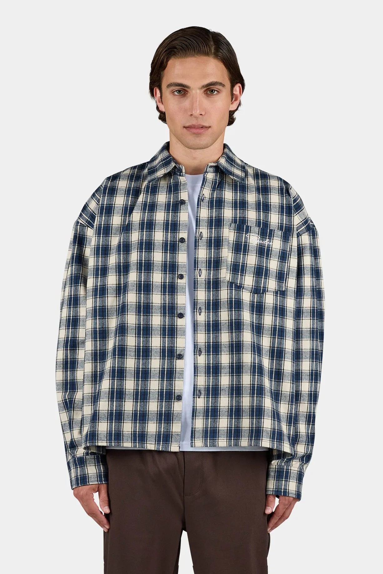 Signar Oversized Flannel Shirt Washed Checked Indigo Navy Stone
