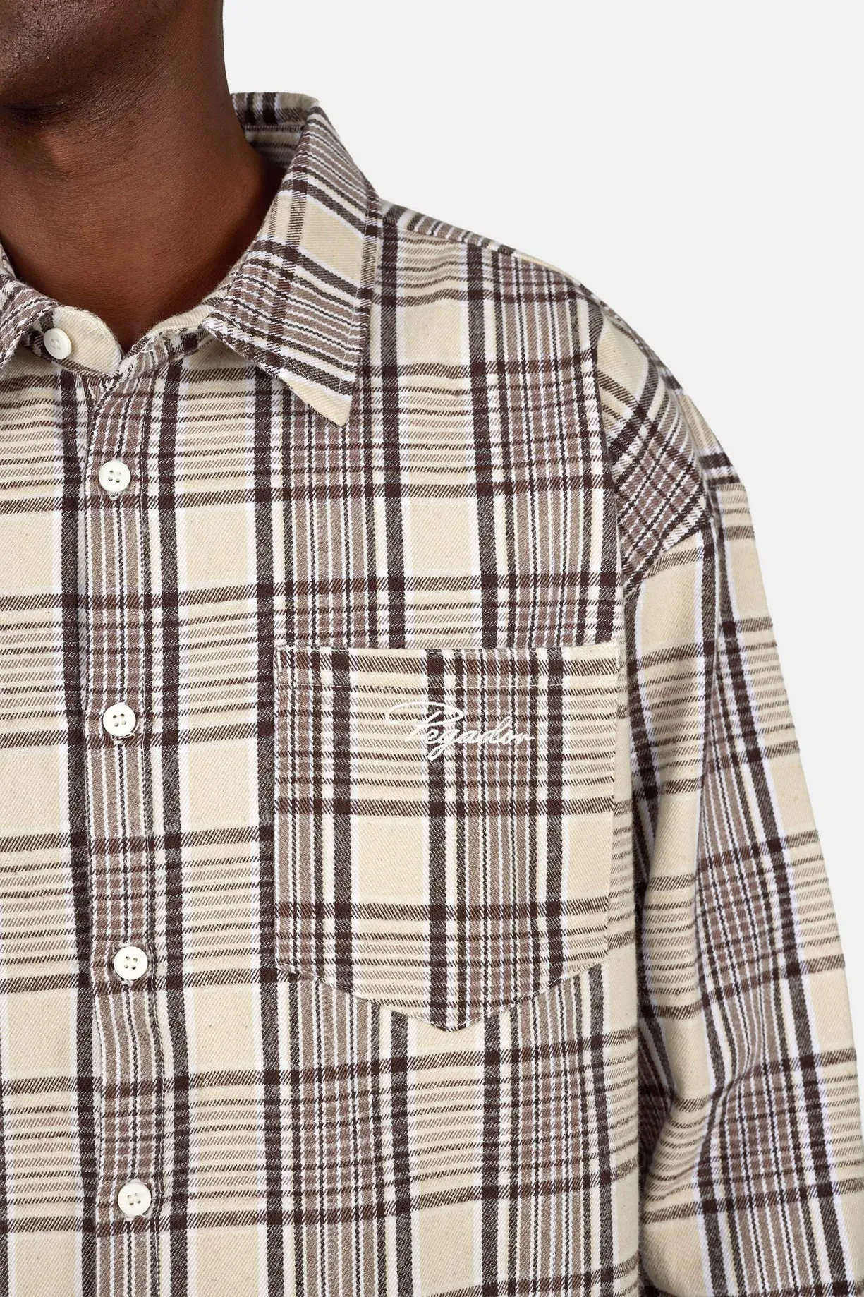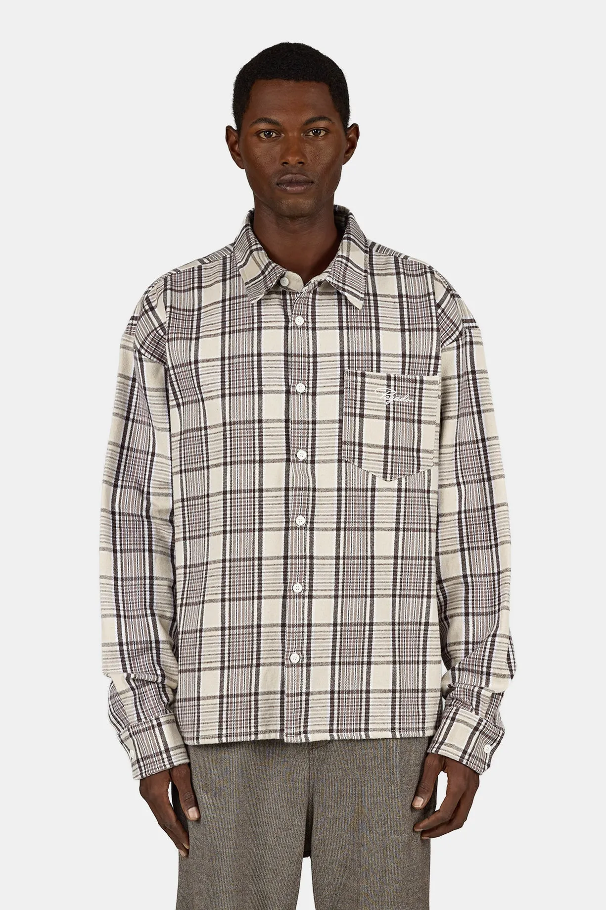 Signar Oversized Flannel Shirt Washed Checked Warm White Walnut Brown